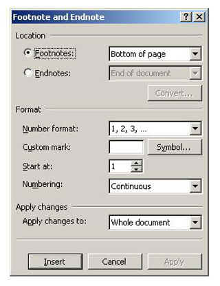 The form of the citation is the same regardless whether footnotes or endnotes are used. The only difference between footnotes and endnotes is location. Footnotes come at the bottom of the page and refer to all citations on that page. Endnotes come all at the end. Since the purpose of citing is to let readers know where the information came from, it is important to document this information as precisely as possible. The citation must include the author's name, the title of the work, the place of publication, the publisher, the year of publication, and the page number(s) on which the information could be found. If a journal or magazine article is the source, the note would also include the journal title, the month and year of publication, and the volume and issue numbers.